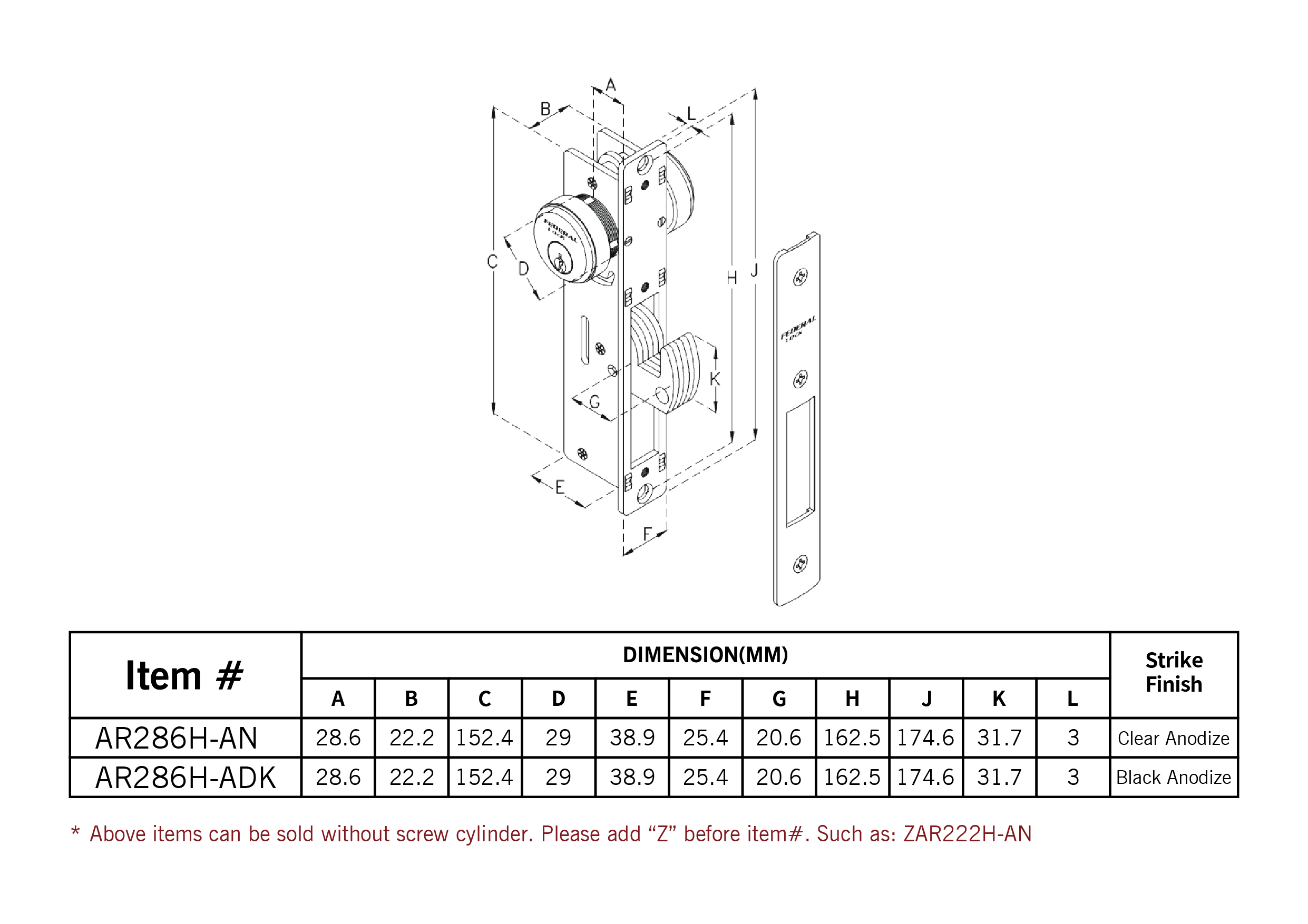 • - Strike: Which can be cut in metal jamb, trim plate, box strike, and armored strike are also available